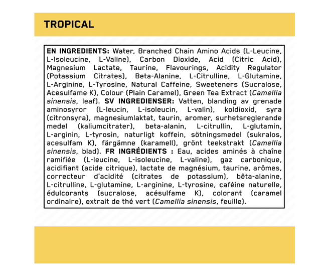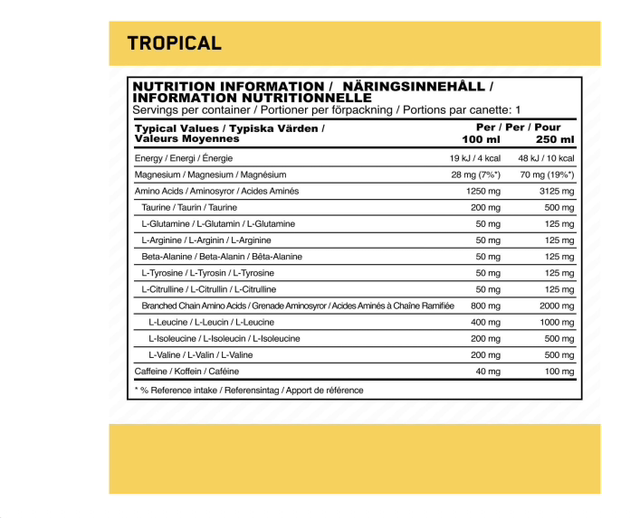 - Amino + BCAA → maintien, énergie et protection du muscle.